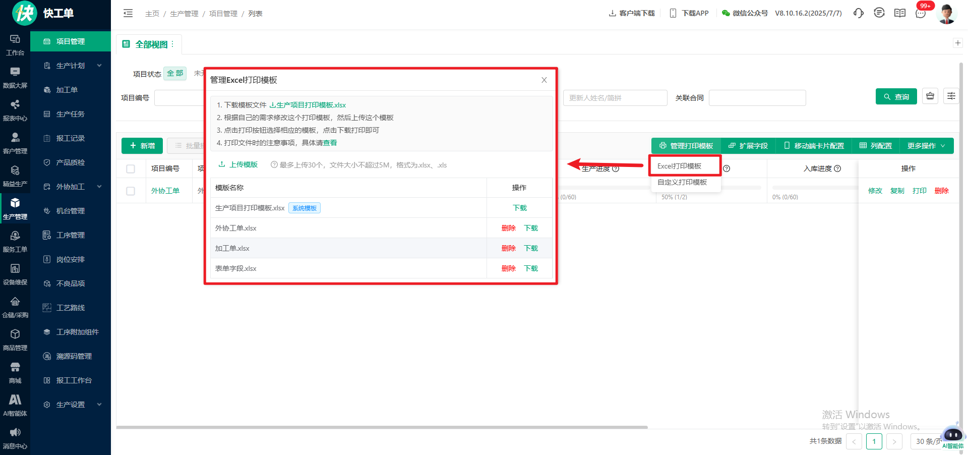 生产项目支持Excel