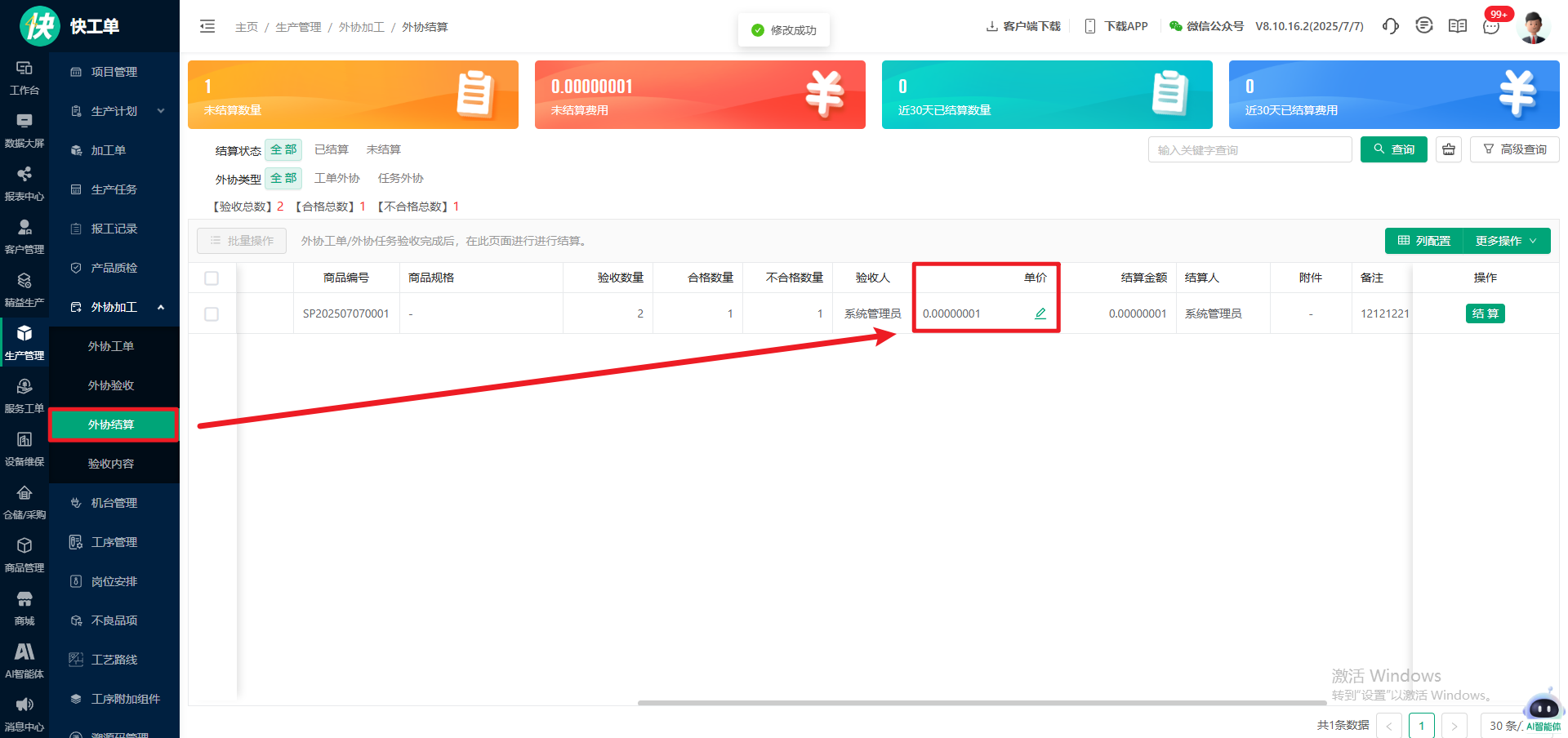 外协工单结算单价支持8位小数