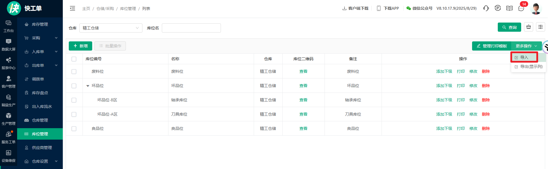 2、库位支持导入;