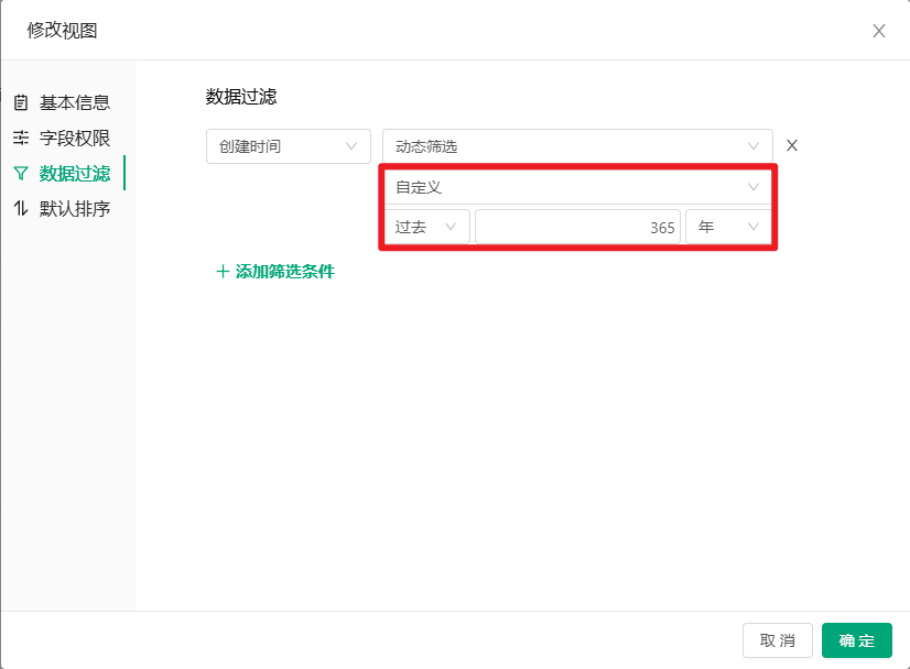 视图中时间类型的字段支持自定义筛选;
